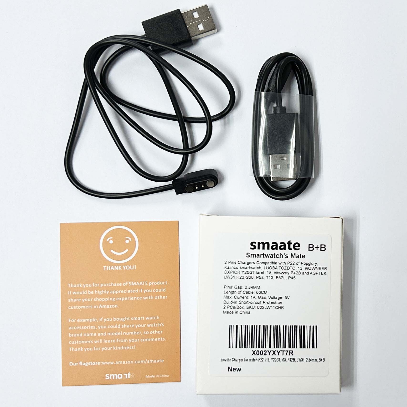 - 2 same Chargers inside the package: you can keep one at home, and put the other one with your power bank, or keep it just in bag to charge your watch by your car’s USB, or Laptop’s USB power in office