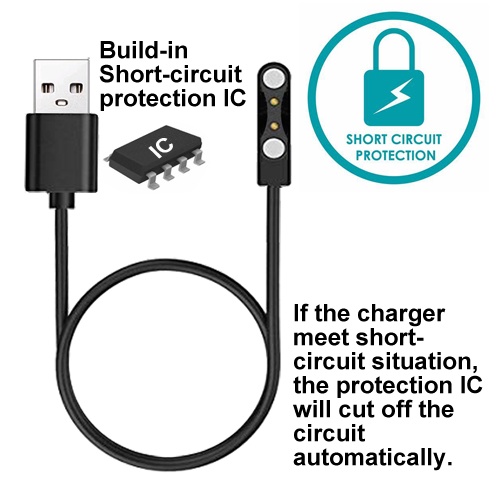 There are Build-in Short-circuit protection IC in our charger. If the charger meets short- circuit situation, the protection IC will cut off the circuit automatically. Anyway, it is a good habit to unplug after charging to keep safe, because the magnetic points may be absorbed on the metal.