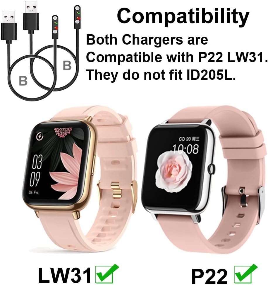 - 2-PACK ONLY Compatible with P22 of Donerton, Popglory, CanMixs, Kalinco 1.4inch smartwatch, Parsonver SR1, and compatible with AGPTEK LW31 1.69inch and Fitniv IW2, also compatible with LUOBA TOZDTO i13, WZWNEER DXPICR Y20GT, Iaret i18,Ypaddbu P58 and Wwzzey P42B. It IS NOT compatible with Feifuns smartwatch, and it DOES NOT support Smartwatch ID205L ID205S ID205U ID216 GT01, IW1, EW1 or ID206 whose App Name is VeryfitPro