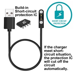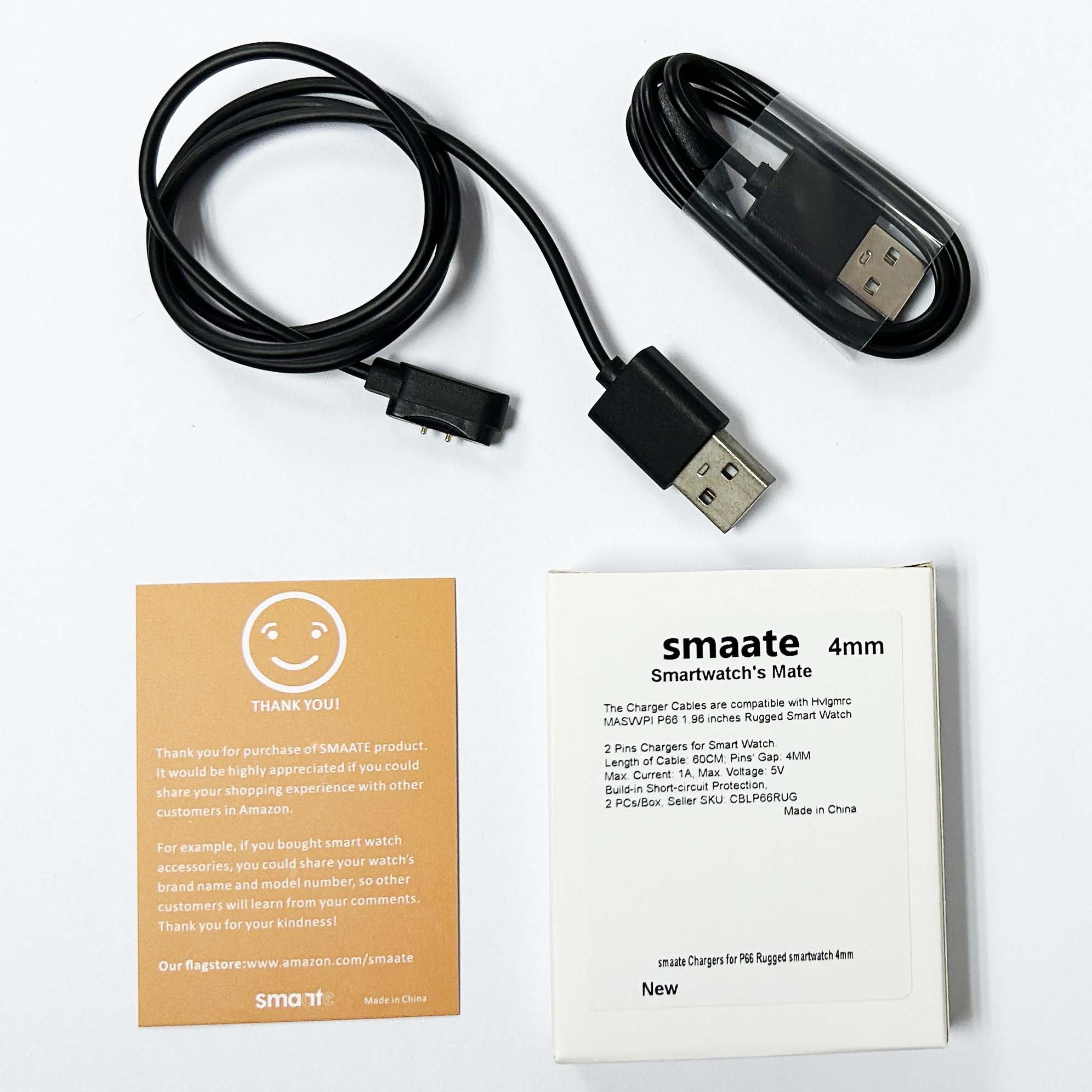 smaate Smart Watch Cable Magnetic Chargers 2-PACK is compatible with Hvlgmrc MASVVPI P66 1.96 inches Rugged Smart Watch.